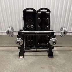 110 LB (50 KG) Weight Lifting Set — Barbell, Dumbbells, Mobile Storage Case + Weight Rack$140Phoenix, AZ