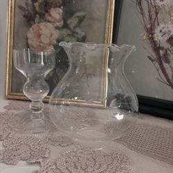 Vintage Etched Glass Hurricane •Scalloped Pedestal $30Gilbert, AZ