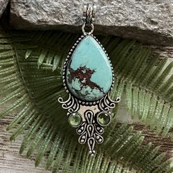 Teardrop Turquoise & Peridot Gemstone 2.8” Pendant$40Sun City, AZ