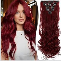 Clip in Hair Extensions 24 Inch 8PCS Wine Red Long Wavy Synthetic Hair Extensions Clip ins Thick Double Weft Hair Clip Extensions for Women$15Tucson, AZ