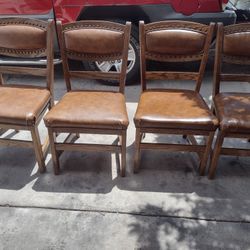 4 Wood & Leather Chairs In Good Condition. I Chair Has A Tear As Seen In Pictures. Doesn't Affect The Chair At All. $140$140Tucson, AZ