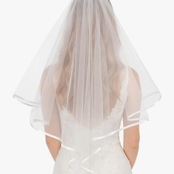 Heclia Short Wedding Veil Elegant White Satin Edge Classic Bridal Veil for Bride Photography Cosplay Halloween Waist Length Tulle Veils for Ceremony E$5Tucson, AZ