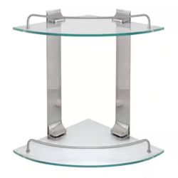 9.5in W Double Glass Corner Shelf w/ Pre-Installed Rails, Satin Nickel$30Tucson, AZ