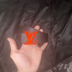 Louis Vuitton orange/black leather monogram belt size 34$300Tucson, AZ