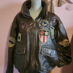 Vintage Brown Leather Bomber Jacket with Patches$400Tucson, AZ