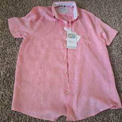 Bruno Positano Linen Resort Shirt – Coral Pink, Size S (New with Tags)