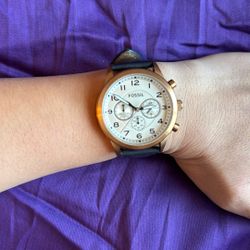 Men’s Fossil Flynn Pilot White Dial, Rose Gold Case, Blue Leather Chronograph Watch$60Tucson, AZ