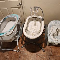 Baby Foldable Bassinet, Bounce/rock seat and Graco Electic Swing $180Santa Rita, AZ