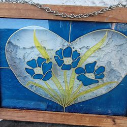 Blue Abstract Flower stained Glass Painting: 3D Modern Art wood frame and chain sun catcher$75Tucson, AZ