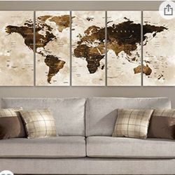 New Art Canvas Print Watercolor Brown Map World Push Pin Travel Wall decor Home$120Tucson, AZ