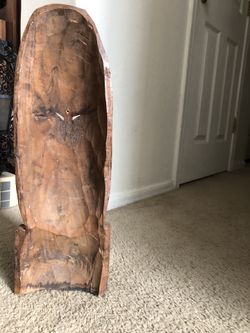Hand carved wooden tiki mask . 1’ 8” tall$25Green Valley, AZ
