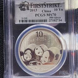 2013 SILVER PANDA PCGS MS70 FIRSTSTRIKE $100Tucson, AZ