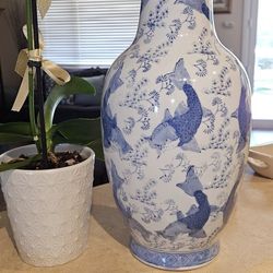Vintage 16" Vase Chinese White and Blue KOI FISH$120Santa Rita, AZ