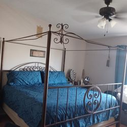 Wood and rod iron Queen bed frame also has Side board. $200Tucson, AZ