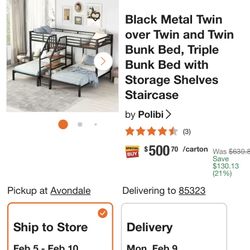 Twin Metal Bunk Bed W/ Foam Mattresses-black$275Tucson, AZ