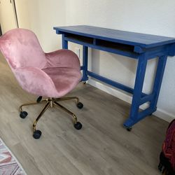 Wooden Desk On Wheels And Pink Velvet Rolling Chair $60Tucson, AZ