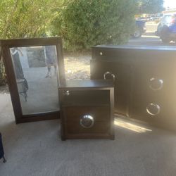 Solid wooden bed, dresser, End/Side Table and a light stand. $100Tucson, AZ