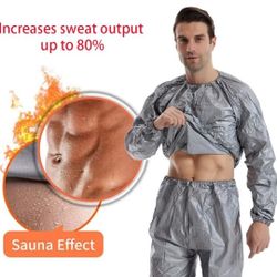 NEW! Full Body Sauna Fitness Sweat Suit, 2 piece Top & Bottom, Size Medium, Silver