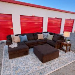 Large Brown Sectional Couch with Ottoman – $450 | Delivery Available |$450Tucson, AZ