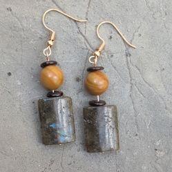 Elegant Labradorite Jasper & Shell Dangle Earrings Gold Plated Posts Handmade $50Tucson, AZ
