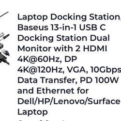 Laptop Docking Station, Baseus 13-in-1 USB C Docking Station Dual Monitor with 2 HDMI 4K@60Hz, DP 4K@120Hz, VGA, 10Gbps Data Transfer, PD 100W and Eth$100Tucson, AZ