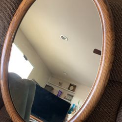 Heavy Duty oak oval mirror in like new condition. This measures 21 inches wide by 29 3/8 inches tall. $20Tucson, AZ