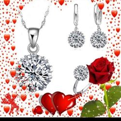 AUTHENTIC SILVER, Women's Jewelry Sets Earrings, Zirconia Pendant Necklace & # 7, # 8, # 9 Engagement Ring, Zirconia Stone, Classic, Romantic, Sparkly$75Tucson, AZ