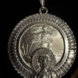 Silver Flat Curb Cuban Chain San Judas Coin Bezel Pendant 1$ Eagle Oz Coin $700Tucson, AZ