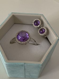 Sterling silver with purple crystal ring and earrings set , ring size 7$30Tucson, AZ
