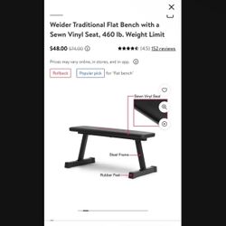 Weider Flat Bench Sewn Vinyl Seat, 460 lb. Weight Limit$33Tucson, AZ
