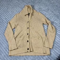 Ralph Lauren Sport Sweater Women Large Cable Tan Brown Cardigan Button$25Ypg, AZ