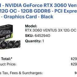 RTX 3060 12GB TRIPLE FAN VENTUS X3 OC$230Yuma, AZ