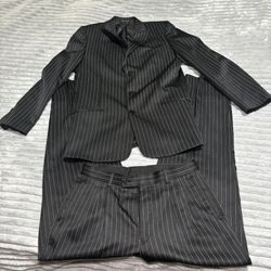 Stanley Blacker 2 piece RN 58217 white pinstrip black jacket and pants$30Ypg, AZ