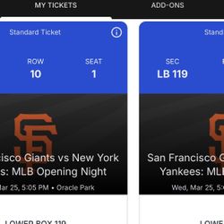 SF Giants opening Night Vs Yankees 3 Tickets$675Vallejo, CA