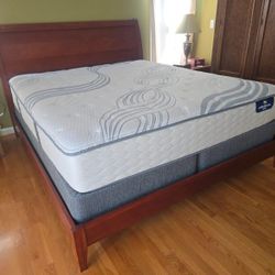 Queen size Wooden bed frame with mattress and box spring.$150Antioch, CA