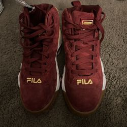 Fila MB burgundy red suede and metallic gold$90San Leandro, CA
