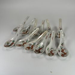 Chinese Mun Shou Longevity Famille Rose Set Of 9 Porcelain Spoons Qing Style$60Concord, CA