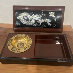 Vintage Korean Dark Lacquered Mother of Pearl Dragon Inlay Wooden Smoking Box w/ brass ashtray & ROKAF Republic of Korea Air Force inscription$180Fairfield, CA