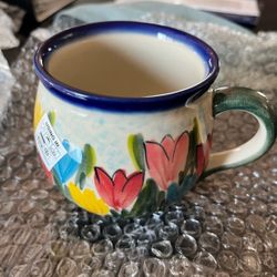 Uno Alla Volta tulip field mugs and plate set, Handmade pottery New $75San Mateo, CA