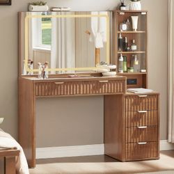 Brown Brand New 43.5" Fluted Makeup Vanity Desk LED Mirror, Glass Top, Charging Station, 6 Drawers$220Dublin, CA