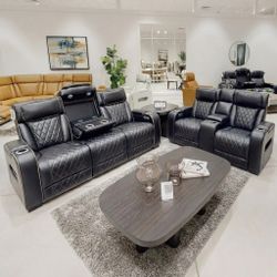 Black Leather Power Double Reclining Sofa With Cup Holders And Power Headrest $1,299Dublin, CA