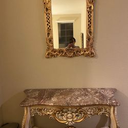 Corner Table With The Mirror, Gold Color, Real Stone Very Good Condition$400Fremont, CA