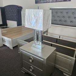 Sterling Silver Queen Bedframe Nightstand And Mirror Glass Lamp $400Antioch, CA