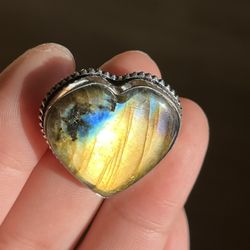 Size 8.25 925 silver overlay labradorite heart ring$25Palo Alto, CA
