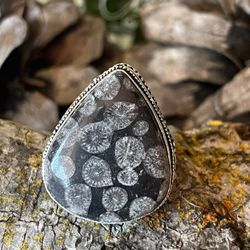 925 Silver Overlay Black Fossil Ring Size 7.75$18Palo Alto, CA