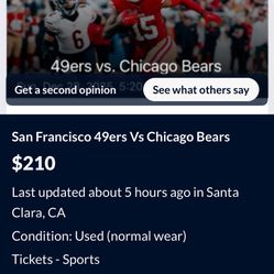 Chicago Bears at San Francisco 49ers Tickets !!!!$175Santa Clara, CA