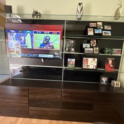 Modern Wall Unit TV Stand w/ Glass Shelves – Dark Wood Media Console – Statement Piece$478Oakland, CA