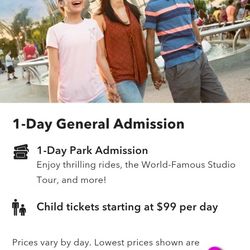 Selling Universal Studios HOLLYWOOD Tickets. $100Los Angeles, CA