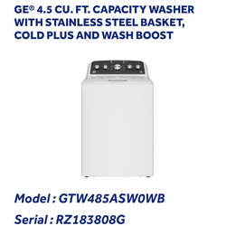 GE® 4.5 CU. FT. CAPACITY WASHER WITH STAINLESS STEEL BASKET, COLD PLUS AND WASH BOOST$300Monterey Park, CA