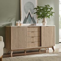 60" Fluted Dresser with Sliding Doors and 4 Drawers, Modern Chest w/Faux Marble Top, Curved Profile Design, Dresser TV Stand, Wood Drawer Organizer fo$200Hacienda Heights, CA